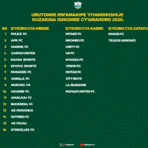 Ku rutonde FERWAFA yatangaje kuri uyu wa mbere tariki 15 Ukuboza 2025 hariho amakipe 16 yose asanzwe akina ikiciro cya mbere, amakipe 10 yo mu kiciro cya kabiri n’amakipe 2 yo mu kiciro cya gatatu.