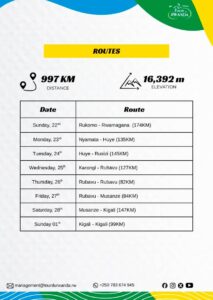 Tour du Rwand izakinwa mu gihe cy’iminsi 8, aho abazasiganwa bazakora ibilometero 993 n’ubuzamuke bwa metero 16,608.