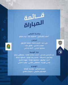 Abakinnyi bo mu kibuga hagati yazanye i Kigali barimo Abdelrahman Magdy, Ahmed Atef Qotta, Mostafa Zizo, Everton Dasilva, Mohamed Reda Bobo, Mahmoud Zadaqa, Ahmed Tawfik, Mahmoud Donja, Mohanad Lasheen, Blati Toure, Mostafa Fathi na Walid El-Karti naho ba rutahizamu yazanye ni Dodo El-Gabbas, Yousef Obama, Fiston Mayele na Marwan Hamdi.